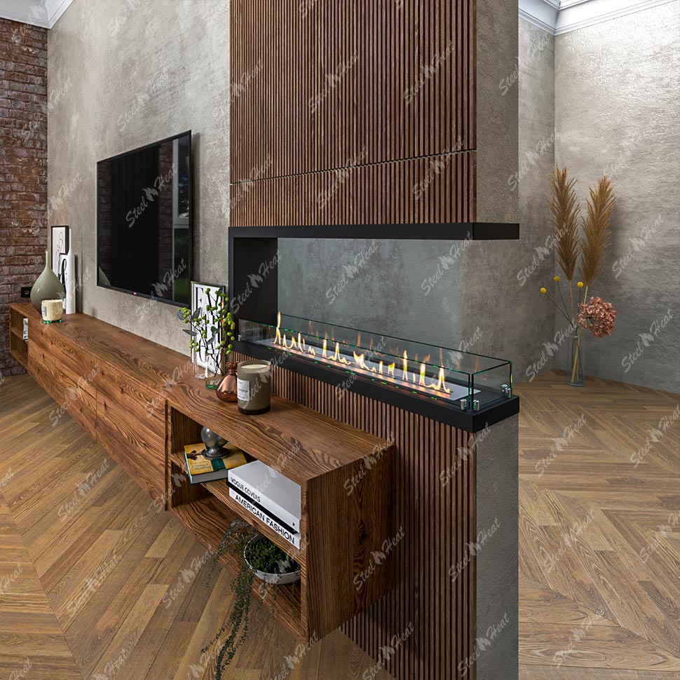 Встраиваемый Биокамин торцевой SteelHeat Leader 1100 предназначен для встраивания в глухие ниши из гипсокартона, кирпича, пеноблоков, бетона.