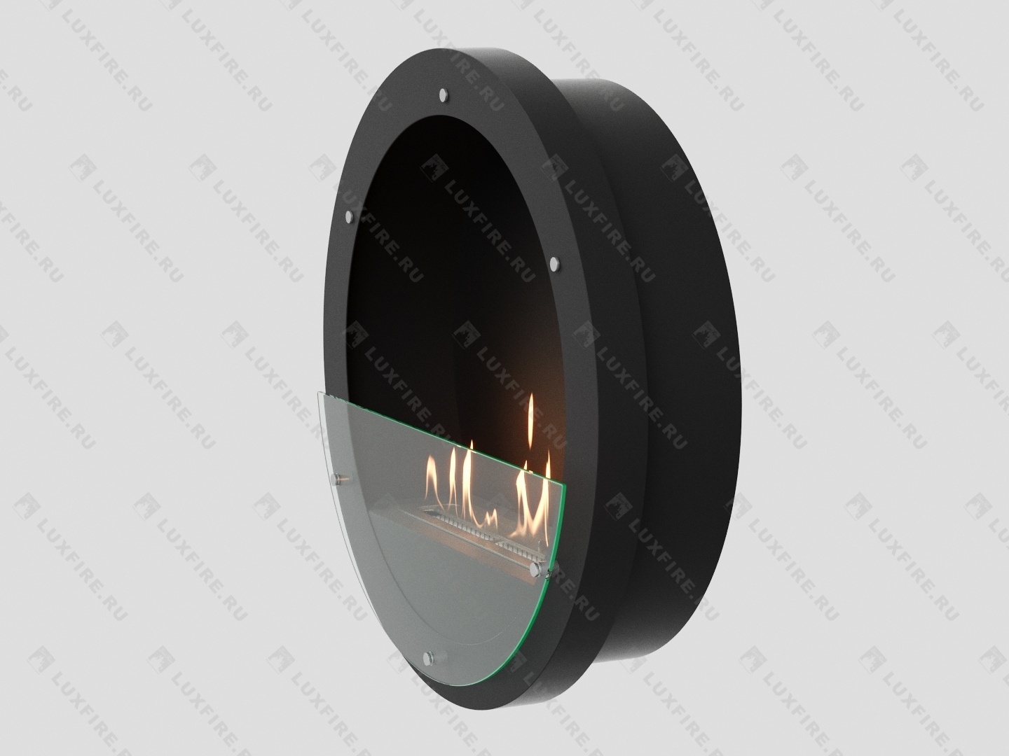 Представляет собой встраиваемую сборную сквозную металлическую конструкцию круглой формы класса S, создающую полузакрытое безопасное пространство для огня с топливным блоком Lux Fire 500 S ограниченную закаленным стеклом в котором горит живой огонь с углом обзора 180 градусов. Универсально подходит для встройки в нишу или подвеса на стену.